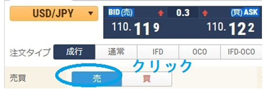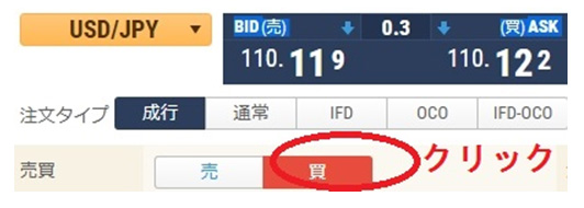 110円が115円というように数字が上がっていくので、「買い」の注文を出します。